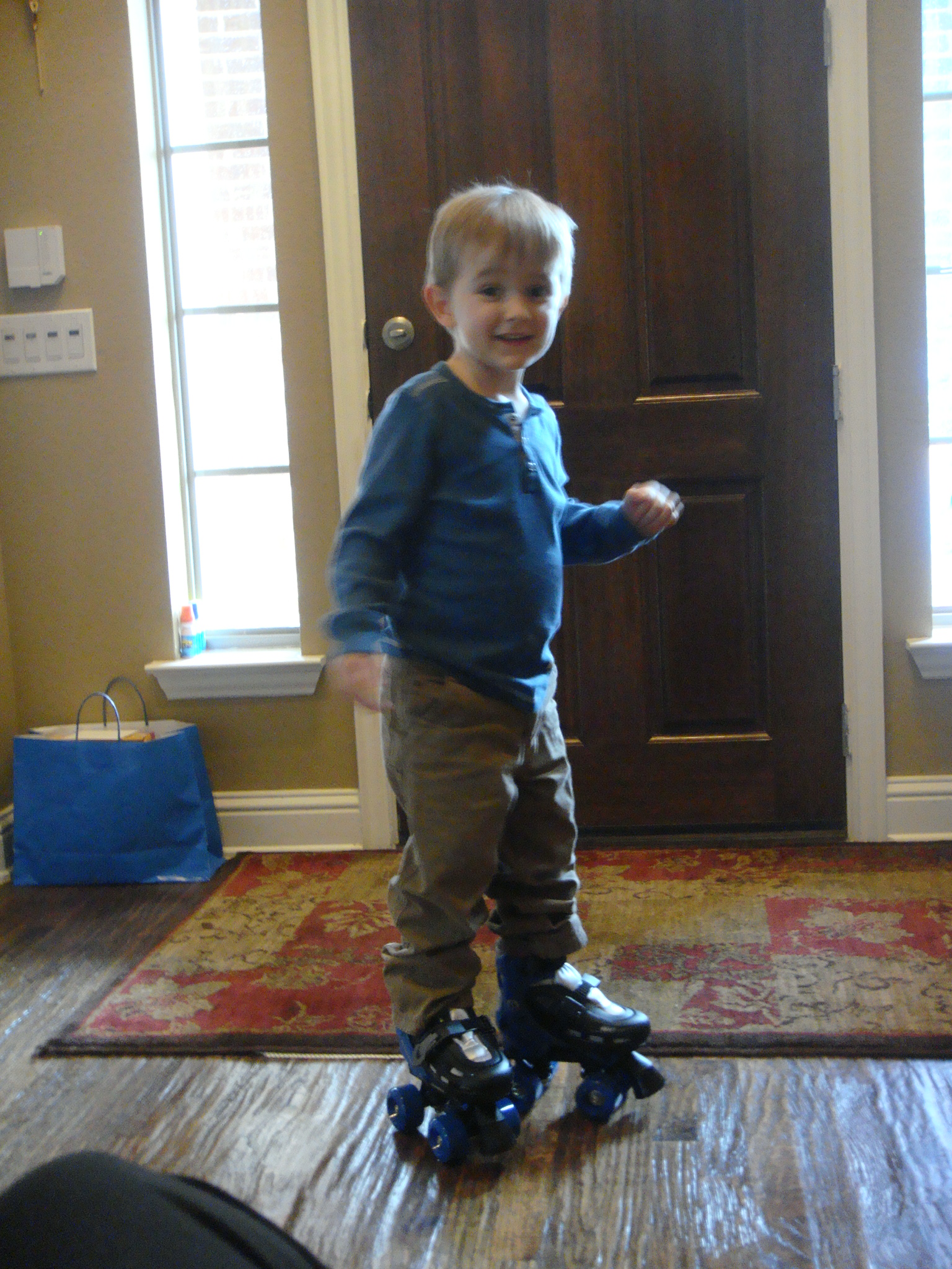 Despite being surrounded by family, it was a bit depressing not having the entire family together and so it truly didn’t feel like Christmas to me. But at least Mason had a very good time, although I can start to see how much he is really missing having his baby brother at home and a bit more of a normal situation. I think he would gladly give up sleeping with mommy and daddy on our alternate nights just to have Cutler at home. However, Mason was very pleased with his gifts including some roller skates which he is determined to skate outside with just like his good friend Avery. No matter how hard I try to get him to practice inside on the carpet, where the falls are a bit easier, he constantly insists he is ready. So I did take him out and I am surprised his elbow isn’t out of socket with all of the falls and catches by me.