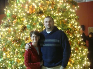 Below are a few more pictures from Christmas. And the photo of Melanie and I in front of the tree, is from church. We couldn’t fit a tree like that in our house without cutting a hole in the ceiling.