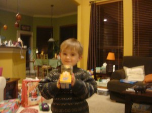 This picture is of Mason and his Zhu Zhu hamster. Apparently they are big item to find this year that only Melanie knew was a big item as she stumbled upon it at the store. Mason’s reaction was classic, in that he apparently missed the commercials on it and just kind of looked at it and moved on until we made him pose for a picture, but he has played with it quite a bit since.