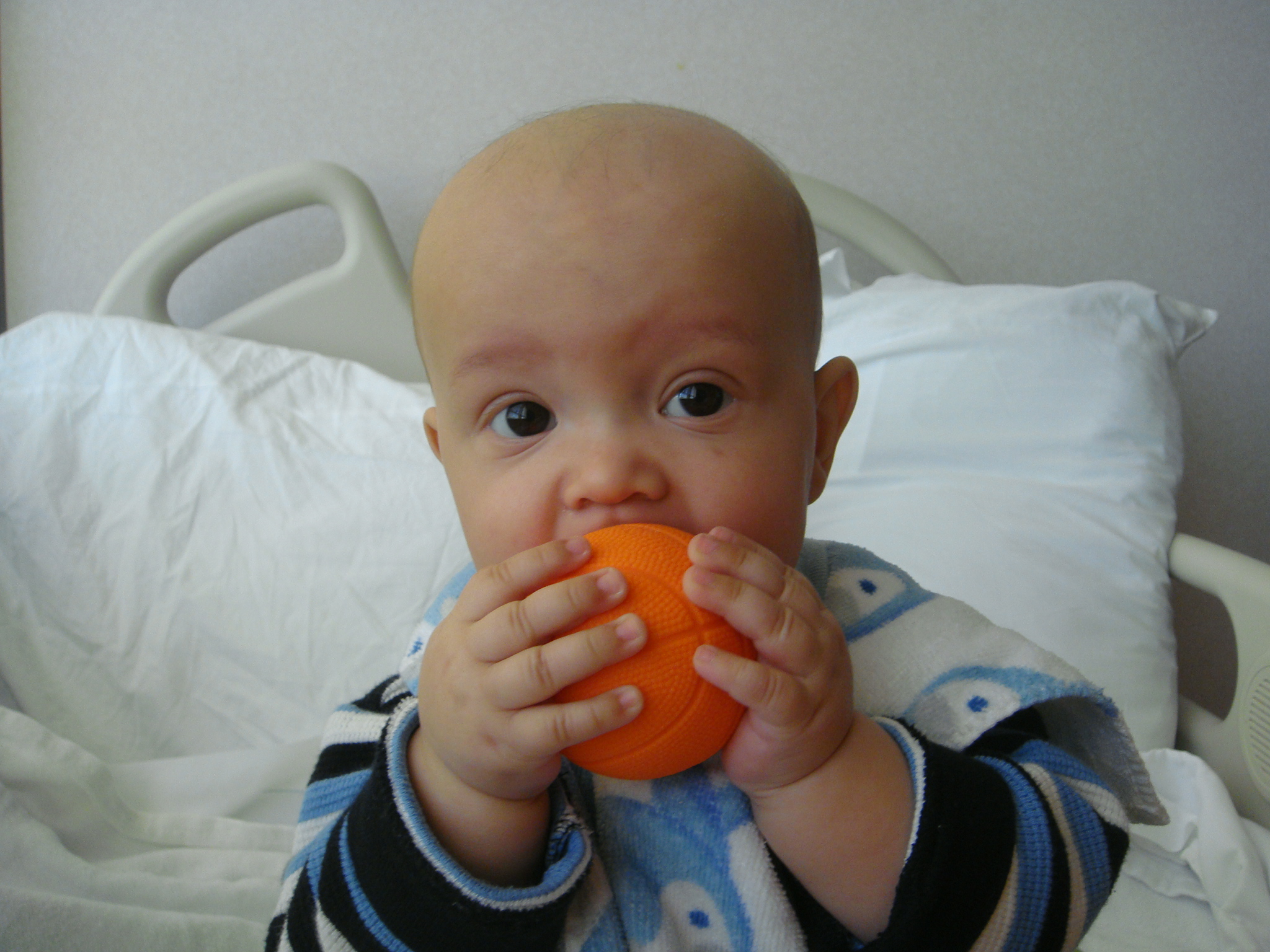 Cutler is still not eating, or for that matter even showing any interest in the bottle aside from using it as a toy. In fact, when the nipple is put close to his mouth he has a gag reaction where he starts salivating and spitting almost immediately. Dr. Weinthal did say that it should all change once the white cells are back up.