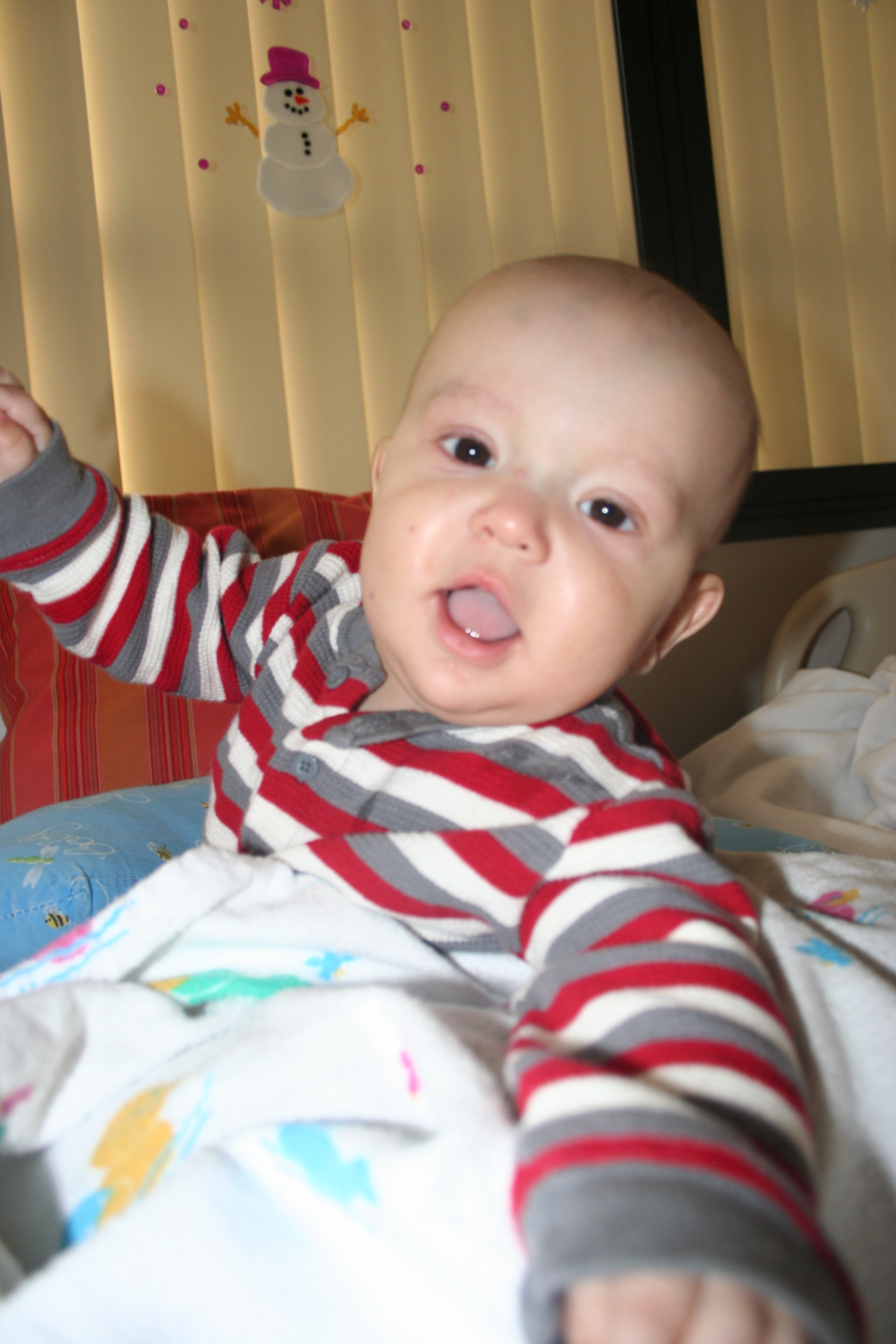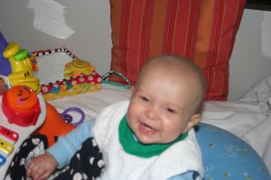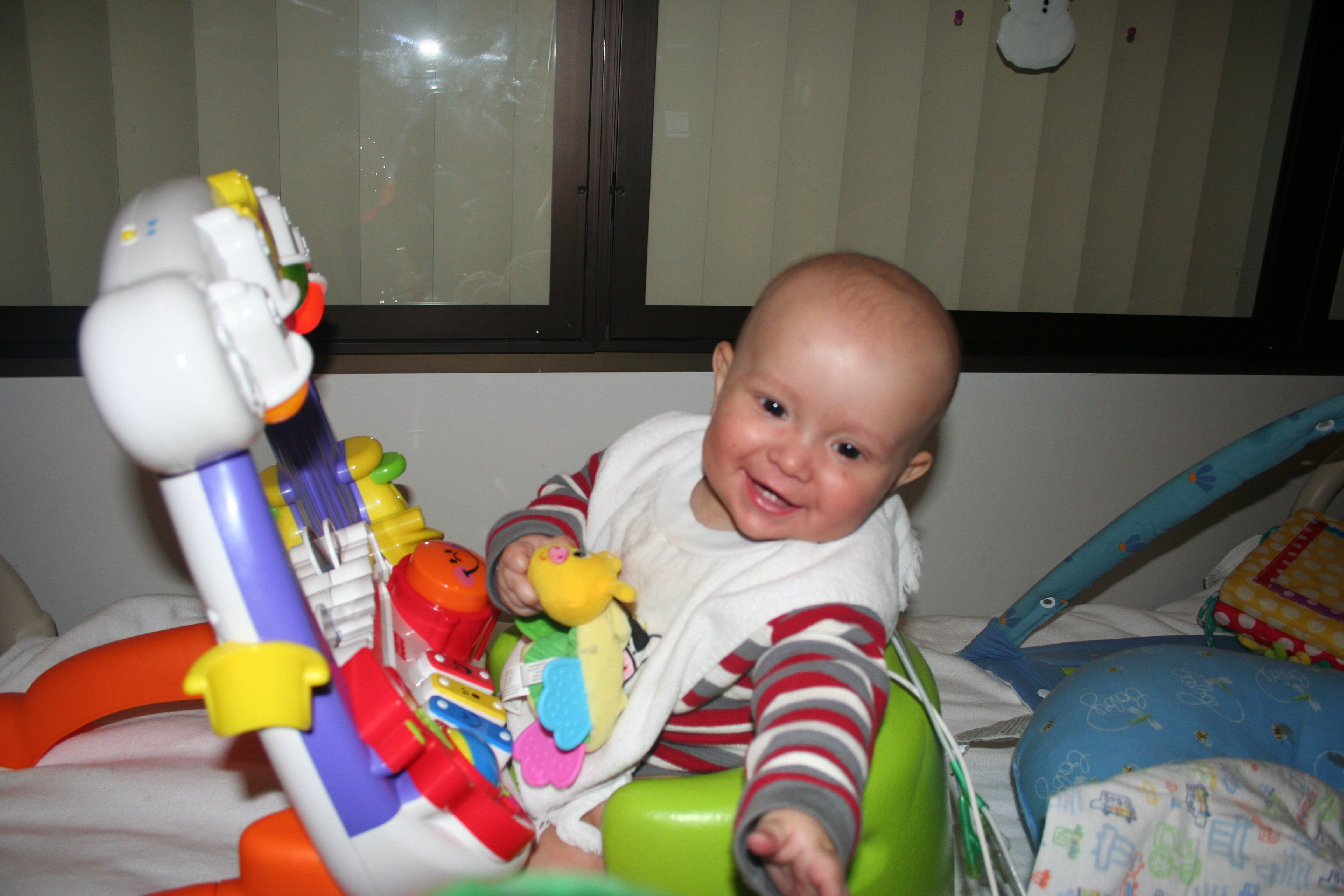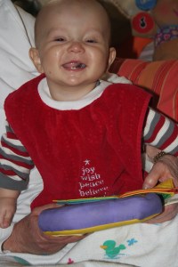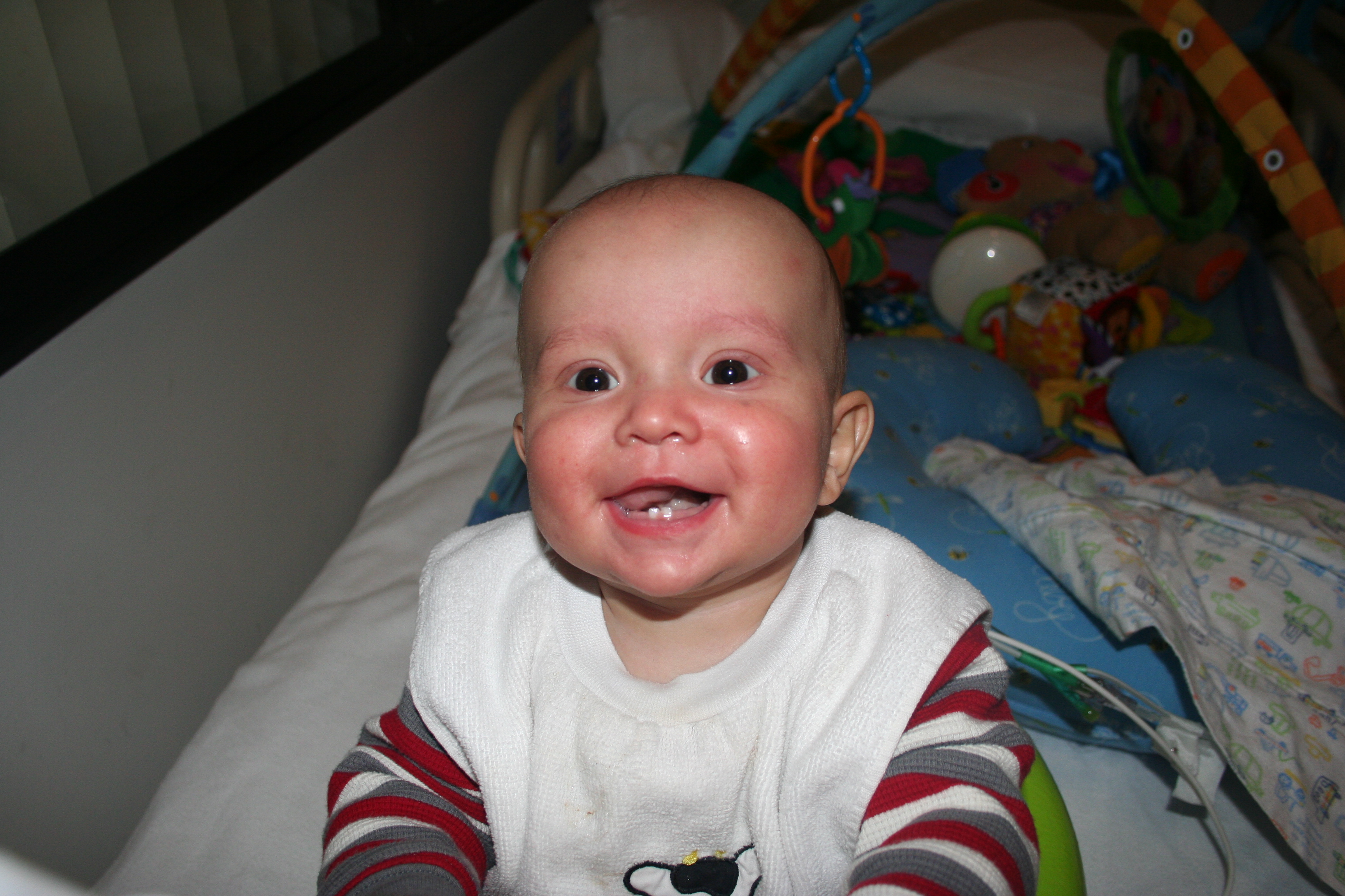 Last night was a bit of a rough night, but not for Cutler. At 3 am, Cutler woke up as happy as a peach and ready to play. Fortunately I was able to get him back to sleep a bit later, but these fun new IV pumps that they have installed keep me up all night with constant alarms going off and unfortunately if I don’t get up and call for the nurse, they would just wake Cutler. However, Cutler did manage to sleep through the alarms until a little after 8am and once again was ready to play.