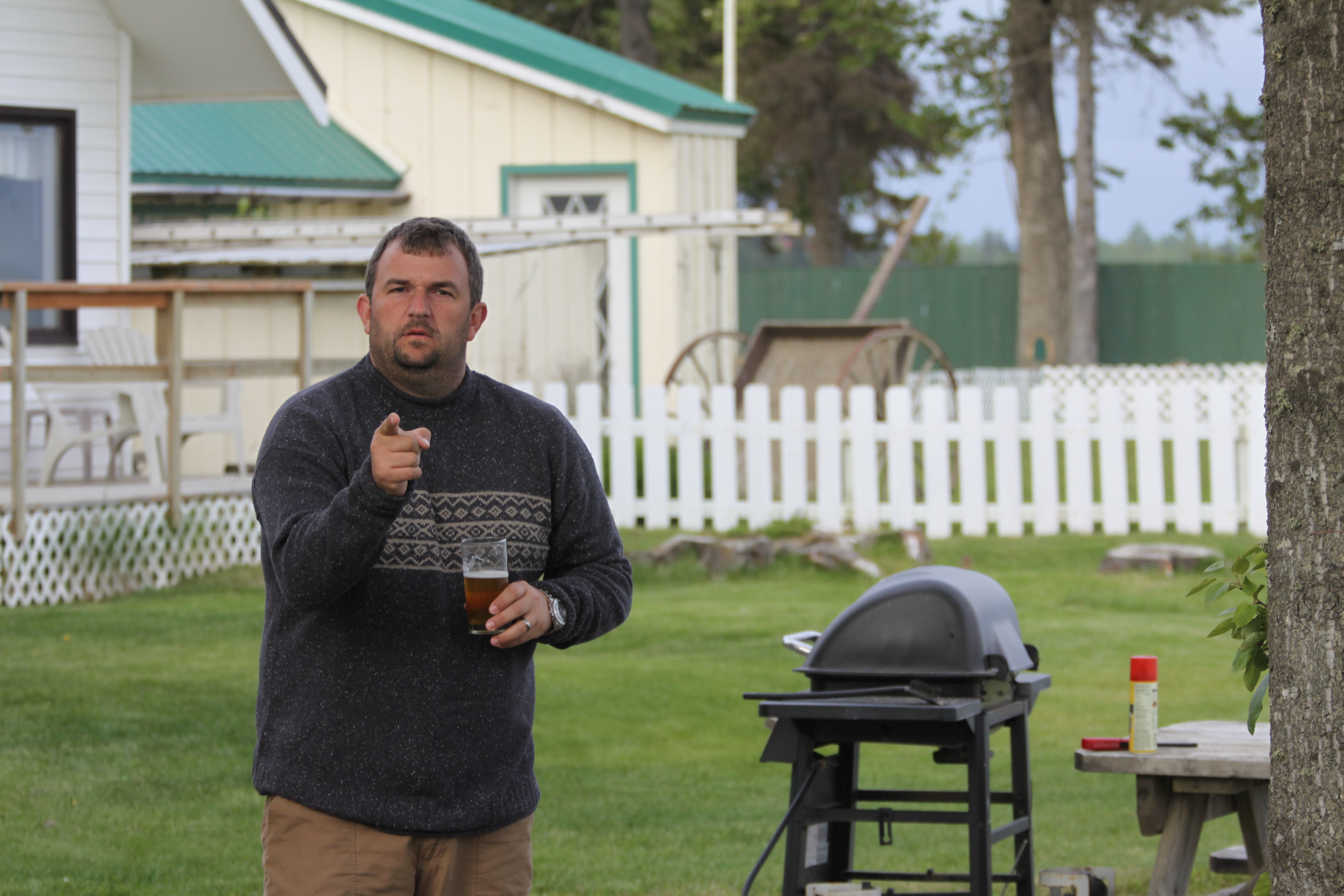 And finally after a relaxing drive, a relaxing walk, we chose to relax that evening with a few local beverages while grilling some reindeer sausage. When Mike and I had our fishing trip we stopped off for dinner on our way back and I had my first taste of reindeer sausage. It was so good, despite the over abundance of mustard, we tried to recreate that experience ourselves and in the store all we could find was “sausage with reindeer meat”. Based on the taste I can only assume it was the same thing and I wish I could find it here in Texas. Mike enjoyed it so much that he decided to turn the leftovers into beanie weanies. This is where Mike also entertained us with his incredible joke about the difference between reindeer and caribou…”The reindeer is domesticated.” Ok, it wasn’t really a joke, but after a few beers and some Sarah Palin arguments for some reason he decided to relay the fact to us in the form of a joke.